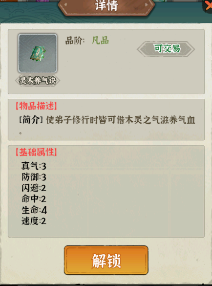 - 效果:显著提升气血(生命)与防御,并附带少量真气(攻击)、命中与速度加成,帮助前排在战斗中抗住更多输出。