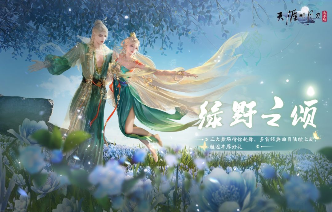 以舞抒情,以礼相赠!除了绝美新场地和经典新曲目外,本期【绿野之颂】舞会为少侠准备了超丰富奖励,无论是外观装饰还是实用道具,都能通过舞蹈轻松获取,让你的江湖风采更胜一筹!