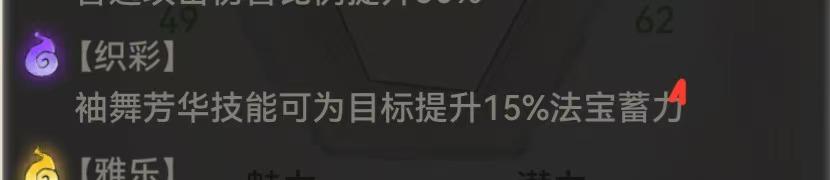 - 一速「乘风」:唯一一个全队增加蓄力的功法,搭配织彩天命(增加蓄力),能每两回合加蓄力,是阵容的“节奏基石”;