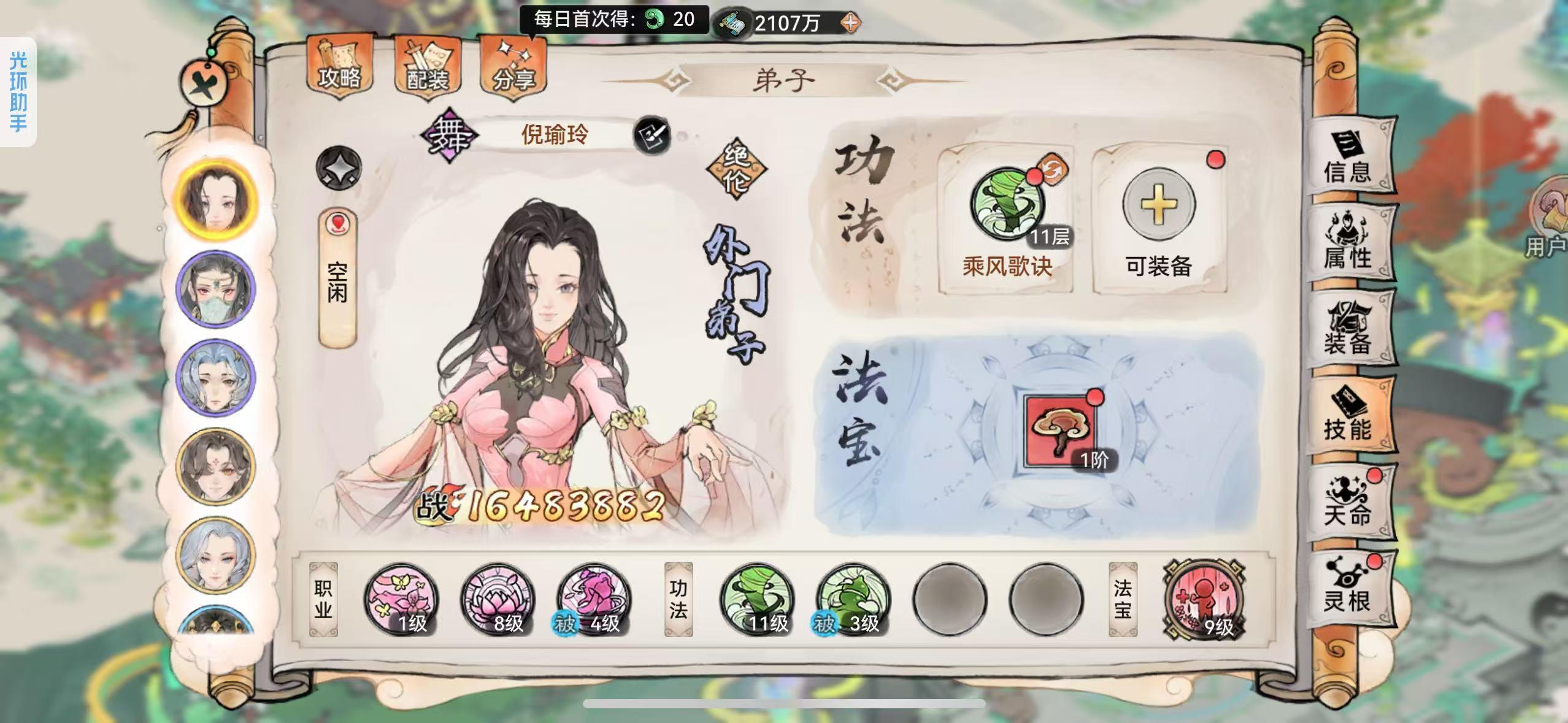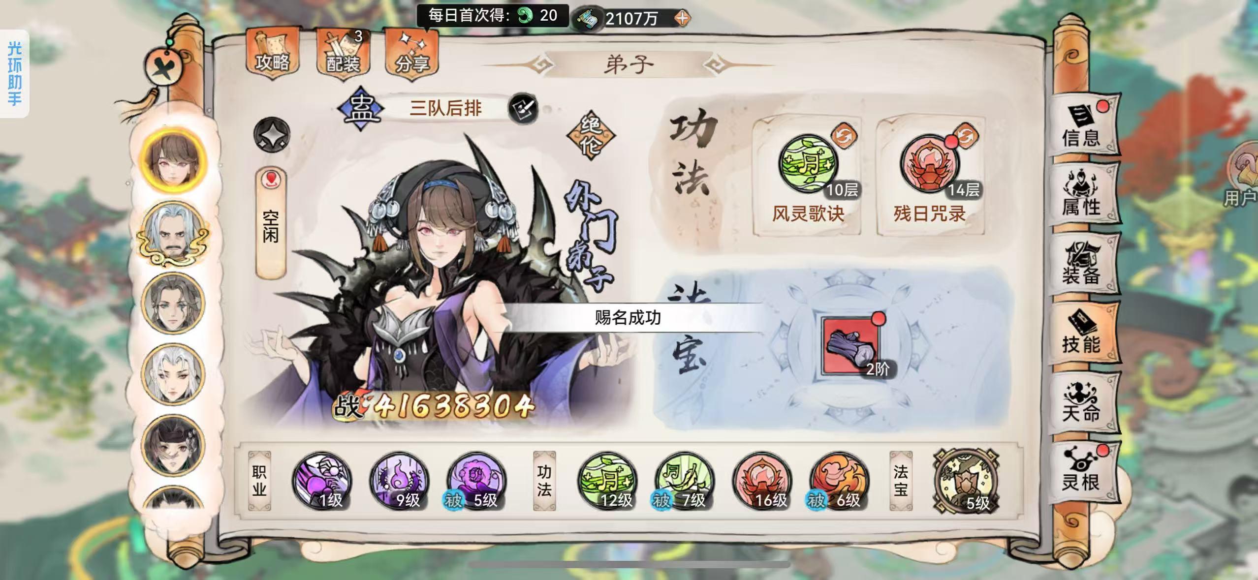 - 二速「残日风灵」:放弃单一风灵或残日咒录,选择双功能技能——既给敌方群体减15%抗性(解决DOT伤害穿透不足的问题),又给队友加蓄力(加速法宝循环),完美适配持续输出体系