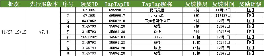- 参与Bug反馈的冒险者需提供实际发生bug的先行服角色ID,并提供对应先行服角色页面截图,若信息错误可能导致奖励无法正常发放 :0