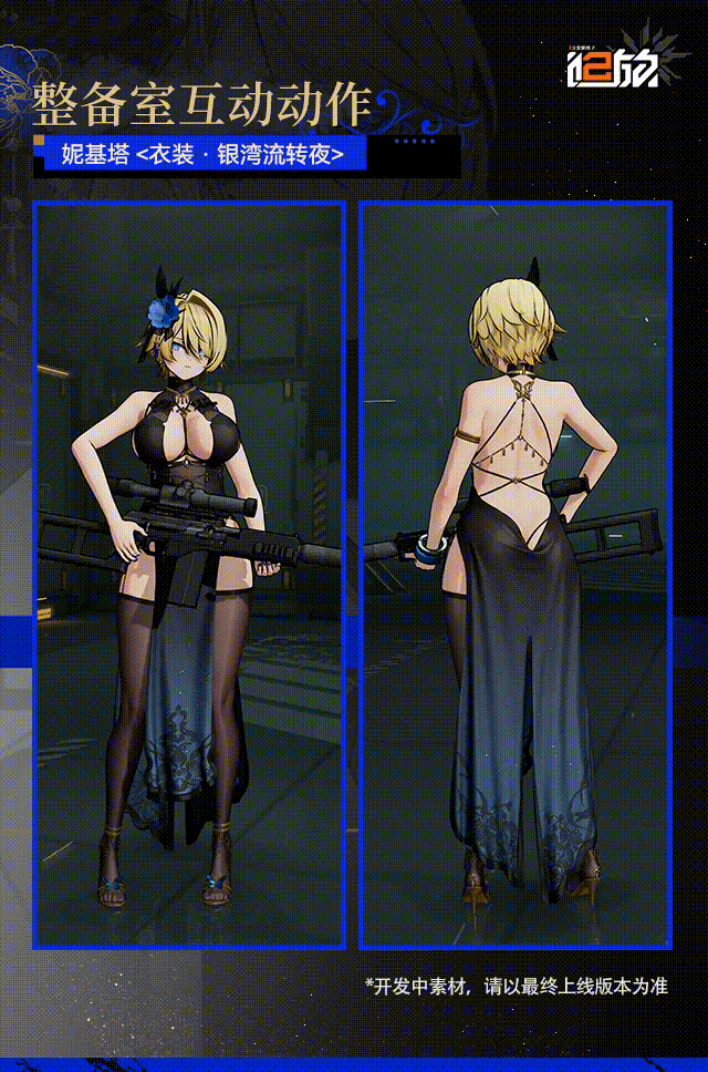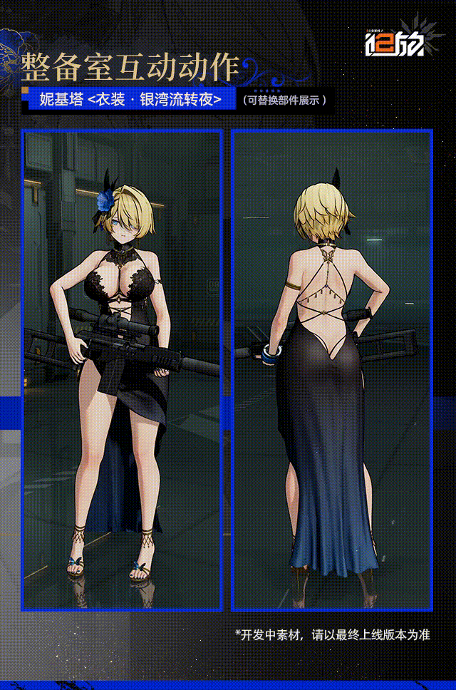 尊敬的指挥官,妮基塔可换装部件套装<衣装·银湾流转夜>将于12月2日维护后 上架外观采购商城,欢迎指挥官届时前往选购并更换。