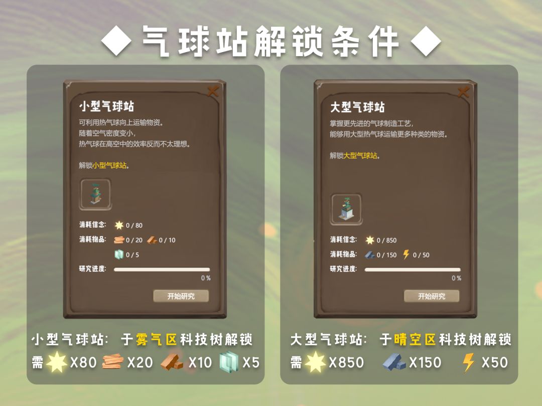 气球站是一种实现物资自下而上跨层运输的空中物流系统。经过风沙区的洗礼后,它标志着塔主正式迈入更高层建设的关键阶段。气球站能高效解决高层补给难题,显著减轻搬运工的工作压力。