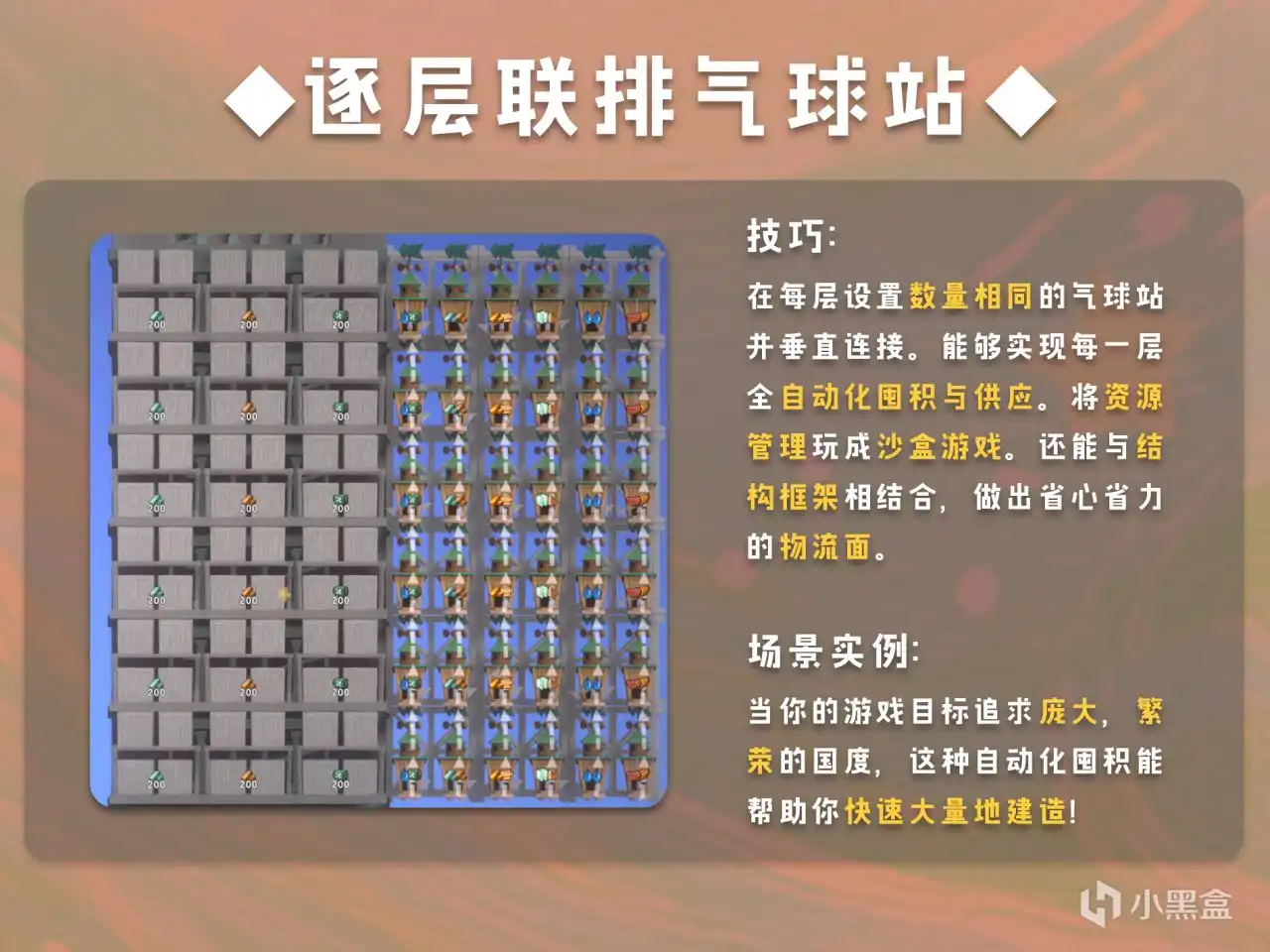 给进阶玩家的建议: 大胆尝试更多气球站使用场景,可以结合各种资源特性规划(如各层生产效率、消耗品与否、稀缺性等)。大佬们,我们期待看到更多的物流奇迹! 掌握气球站的妙用,化繁为简、化乱为趣——让你的塔,不仅仅在高度上高,也是在智商上高!💡🏗