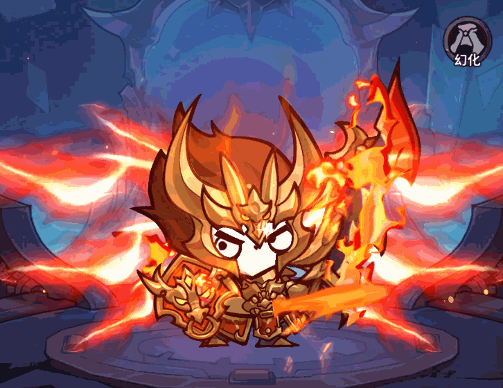 黄金额饰映照着跃动火光,红金法袍裹挟着流淌的熔岩纹路;