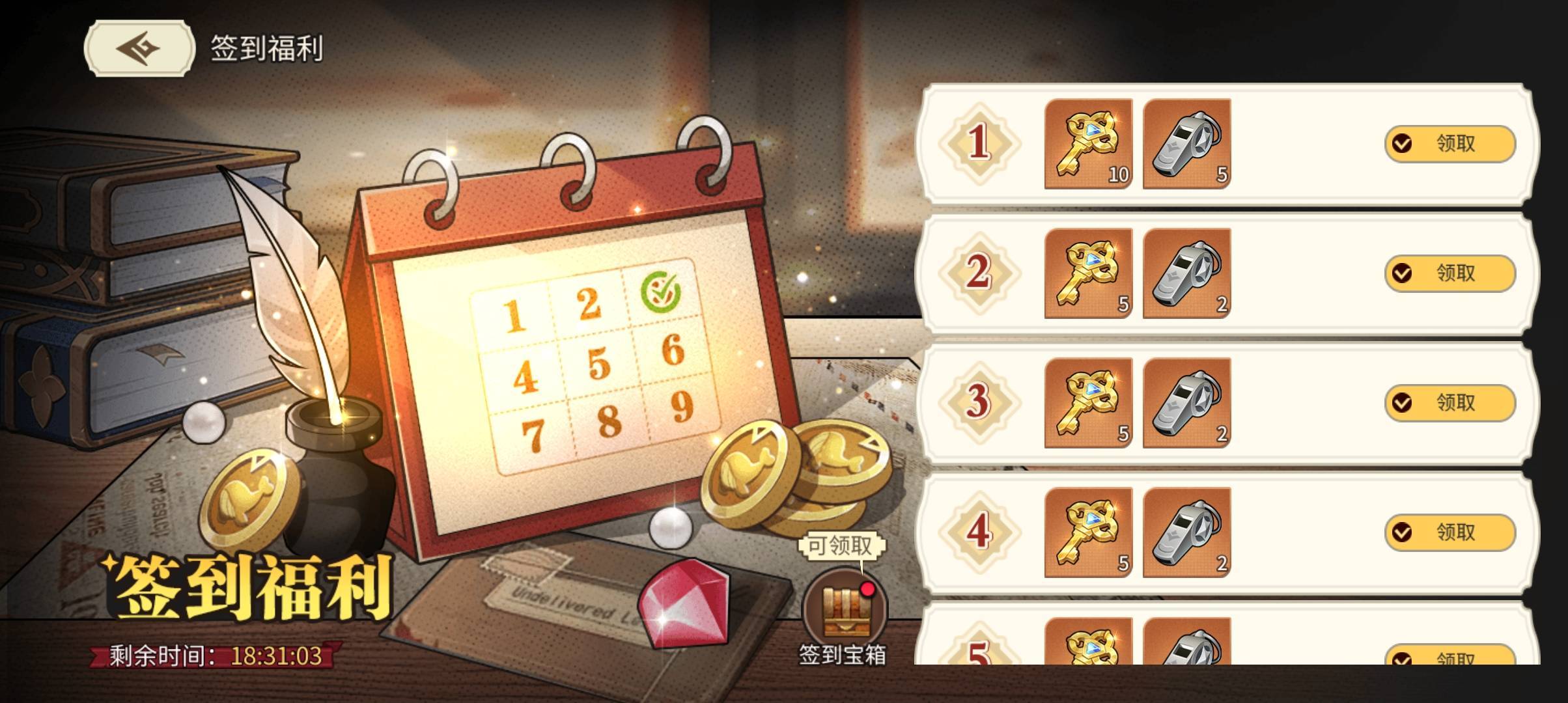每日签到领取召唤道具启梦金匙和契约之哨!倒计时结束后还有惊喜大宝箱,千万别错过~