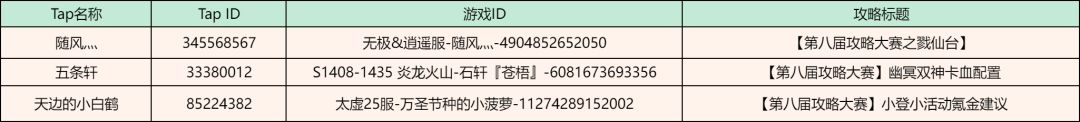 2)攻略贴标题需要添加【第八届攻略大赛】前缀,例:【第八届攻略大赛】萌新道友前期引路
