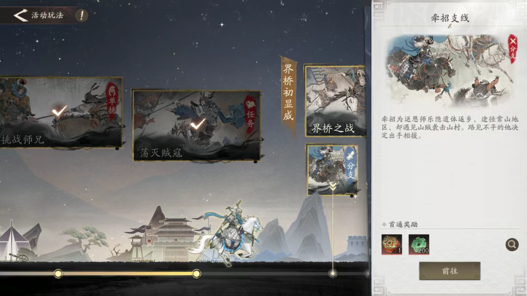 各位明公可体验牵招忠义之旅 —— 护送恩师乐隐遗体返乡,途经常山遇山贼,路见不平拔刀相助!首次通关还可获得举才诏、太平玉奖励。