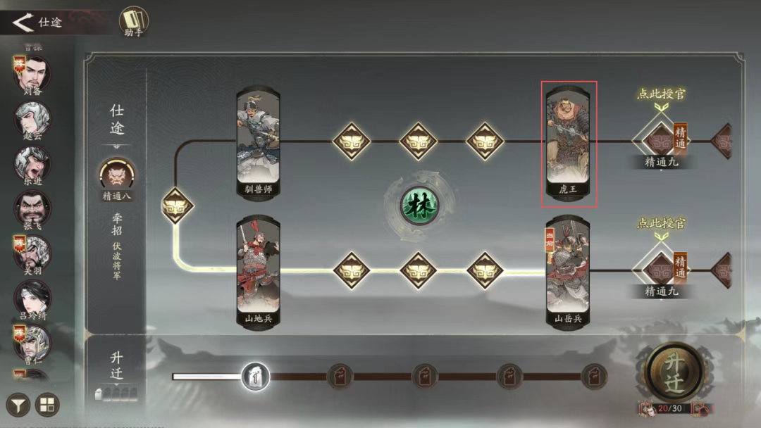 在仕途进位方面,建议明公首选【虎王】。可解锁技策【怒吼】【剿杀殆尽】,技策剿杀殆尽,可对范围内随机敌军发起总计三次攻击,能高效叠加【撕裂】效果,进而快速击溃敌方单位!