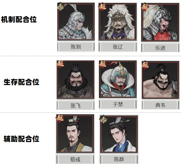张飞、典韦、于禁主要可以帮助牵招提升生存能力,是牵招蛮不错的生存配合位选择。