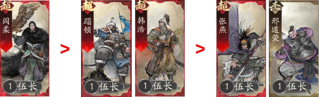 牵招的副将,除了专属副将阎柔之外,选择主要考虑堆叠物攻&物防面板、或提供续航类副将,从而提升牵招的固伤/输出以及生存能力。