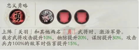 牵招自身是其徐如林的持有者,可以协助激活军势的有:曹操的乱世英雄、于禁的不动如山以及关羽的忠义勇略。