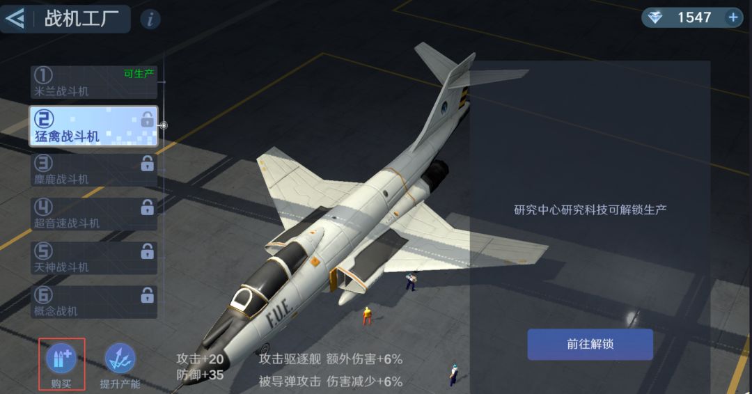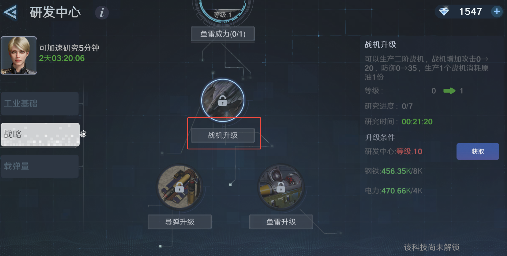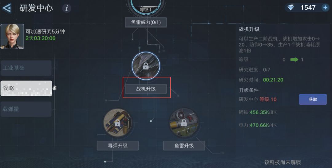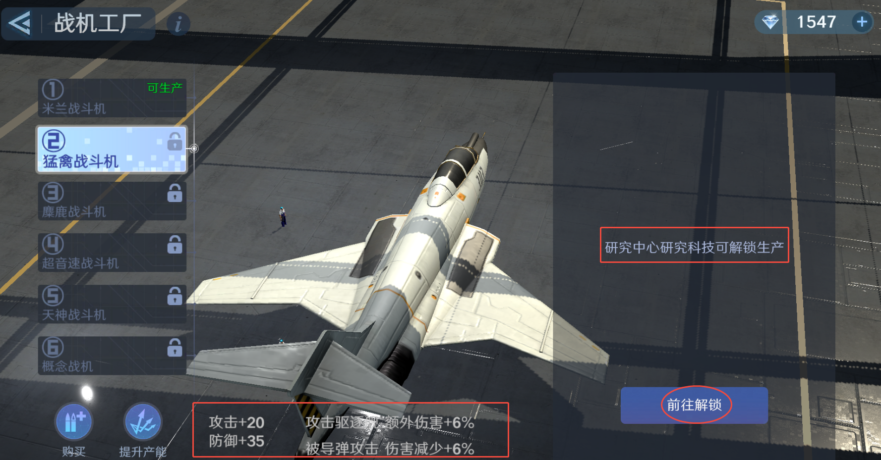①点【前往解锁】→来到【研发中心】→选择【战机升级】;