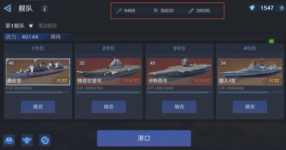 (战舰一出港就烧库存,记得常补仓!)