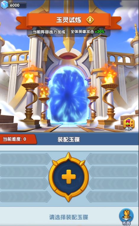 装配好玉碟后,就可以开启挑战了,要注意的是,不同的玉碟有不同的战力限制,布阵战力超过该战力才可以进行挑战。