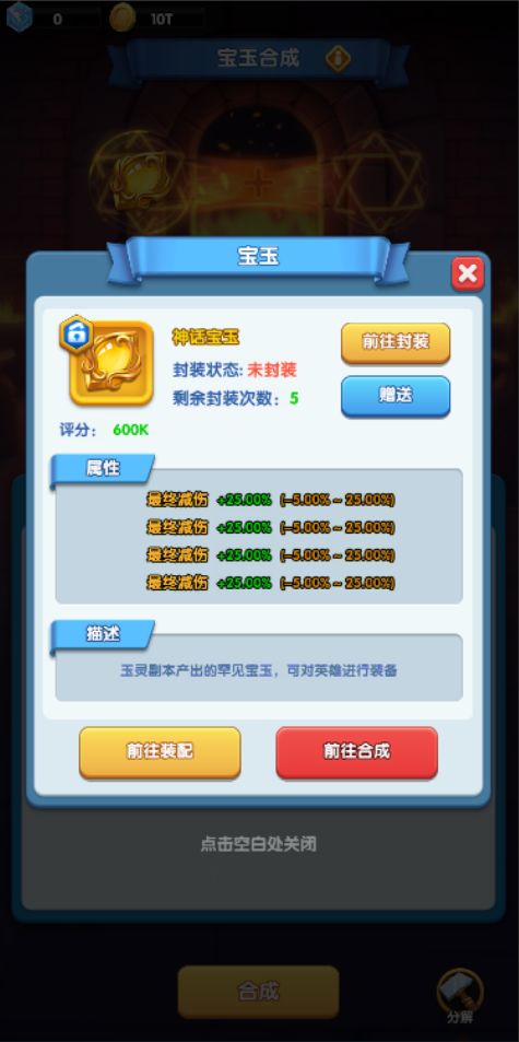 与此同时,英雄界面增加添加宝玉的槽位,在这里可以穿戴掉落的宝玉,提升英雄属性!