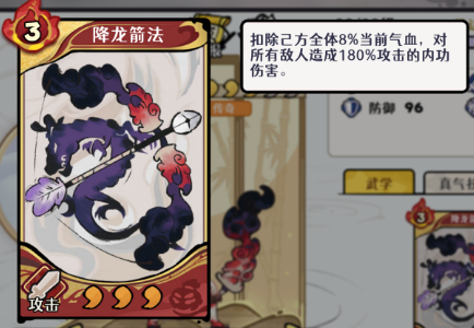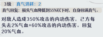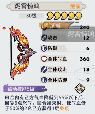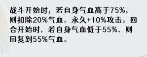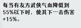 烬霄惊鸿:己方有武侠血量下降至55%以下时回怒