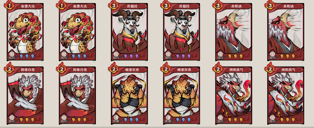 通过血雾大法和炎刀武学累计攻击力,通过每回合两张的双生灵珠叠真气增伤,然后一刀秒怪。