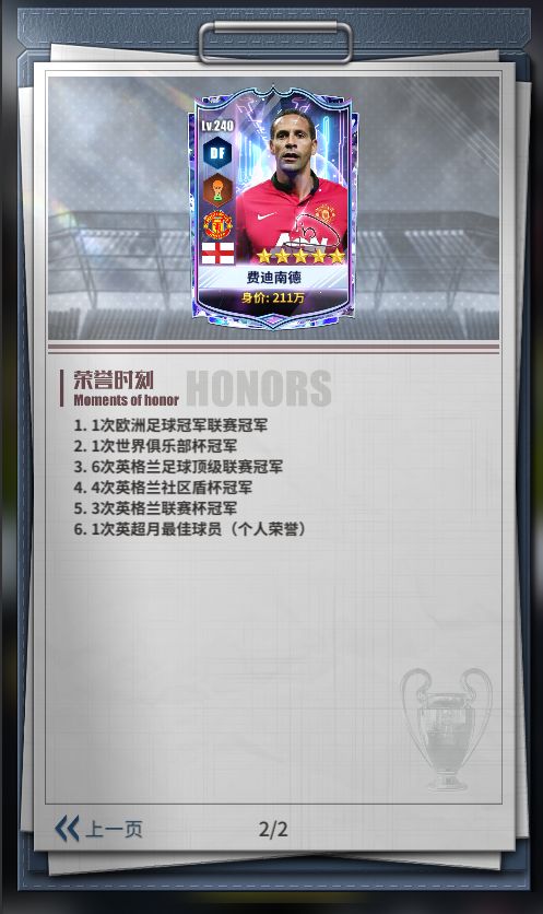 2002年,费迪南德加盟曼彻斯特联足球俱乐部,期间帮助曼联夺得6次英超联赛冠军、1次欧洲冠军联赛冠军等多项荣誉,个人曾5次入选PFA年度最佳阵容。