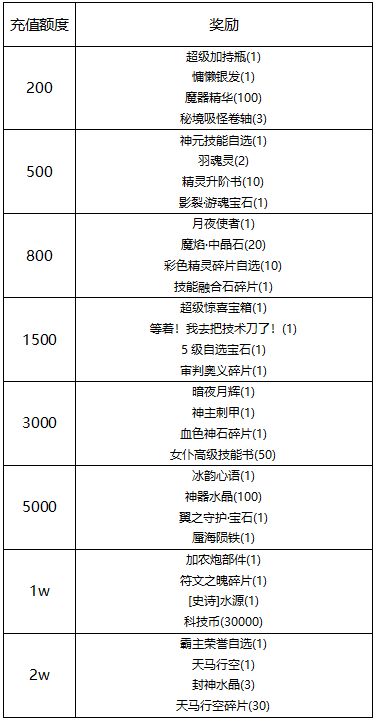 活动期间内充值达标可获得相应奖励以及低档位所有奖励!