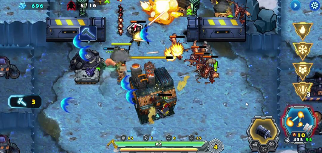 建筑布局:根据敌人进攻路线和类型布局防守塔,如主要进攻方向多建冲击波枪塔等枪塔。