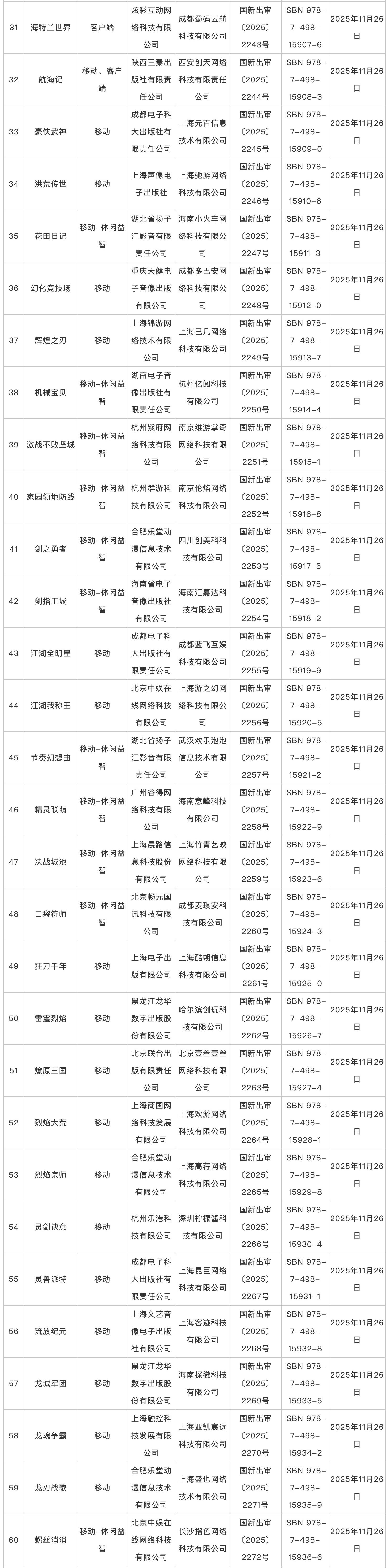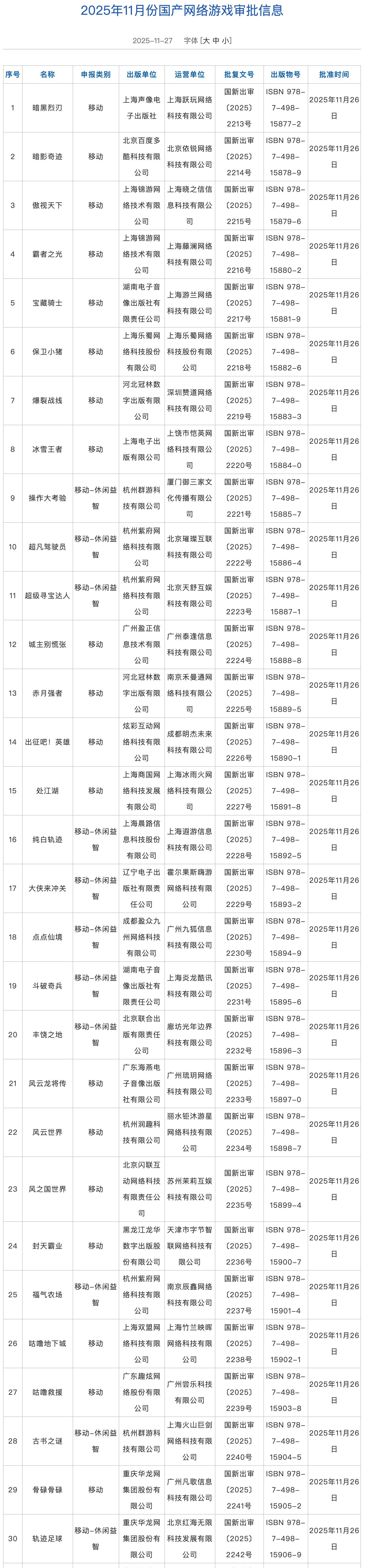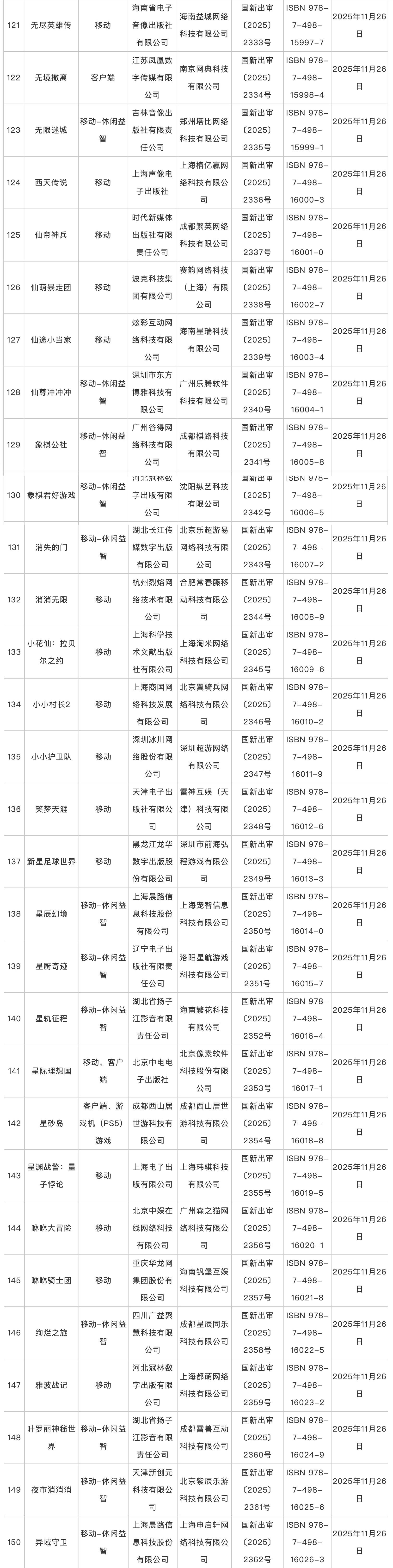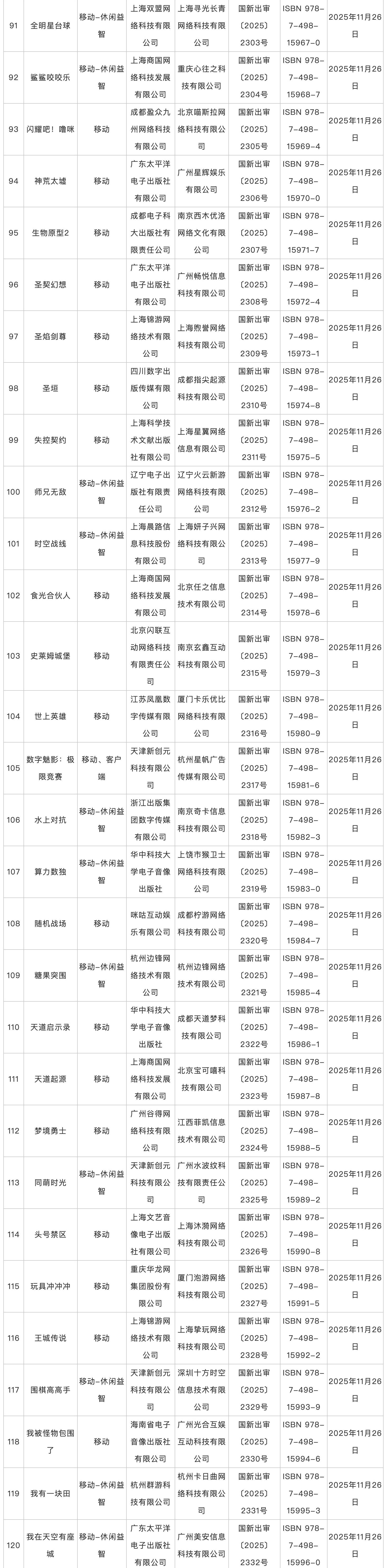 2025年11月版号发放,共6款进口游戏、178款国产游戏,《Arcaea(韵律源点)》《生物原型2》《世上英雄》《星砂岛》等游戏过审。