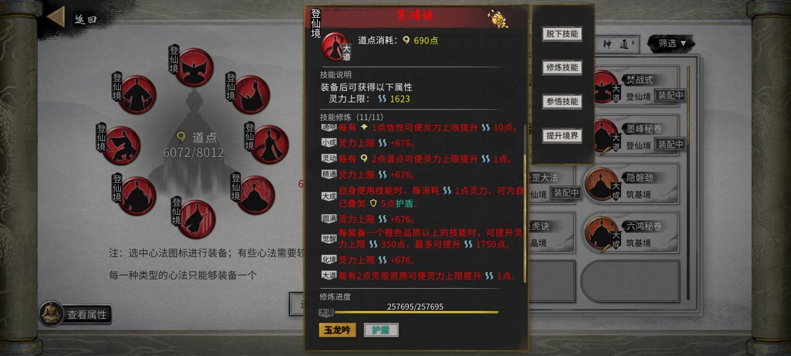 身法由于身法由于该存档的原因,可以在吃满穿云闪电加成的情况下,酌情刷掉两个移速词条换成护心,天翎剑意是必须带的。这一套的秒伤很高,洪荒难度下三幻神也是可以打的,劲、经、式、诀这些到了大后期除了最核心词条保留外可以换成基础数值更高的各个词条,以弥补水剑基础数值较低的缺口。至于仙法,这套唯一的缺口就是蓝量,拂霜斩夜需要再带一个噬魂塔的盈能,可以根据当前自己存档的情况酌情选择,最后在化神之前最好不带月影剑,改成清风剑,因为化神之前月影剑的词条满不了,缺词条的月影剑是很差的