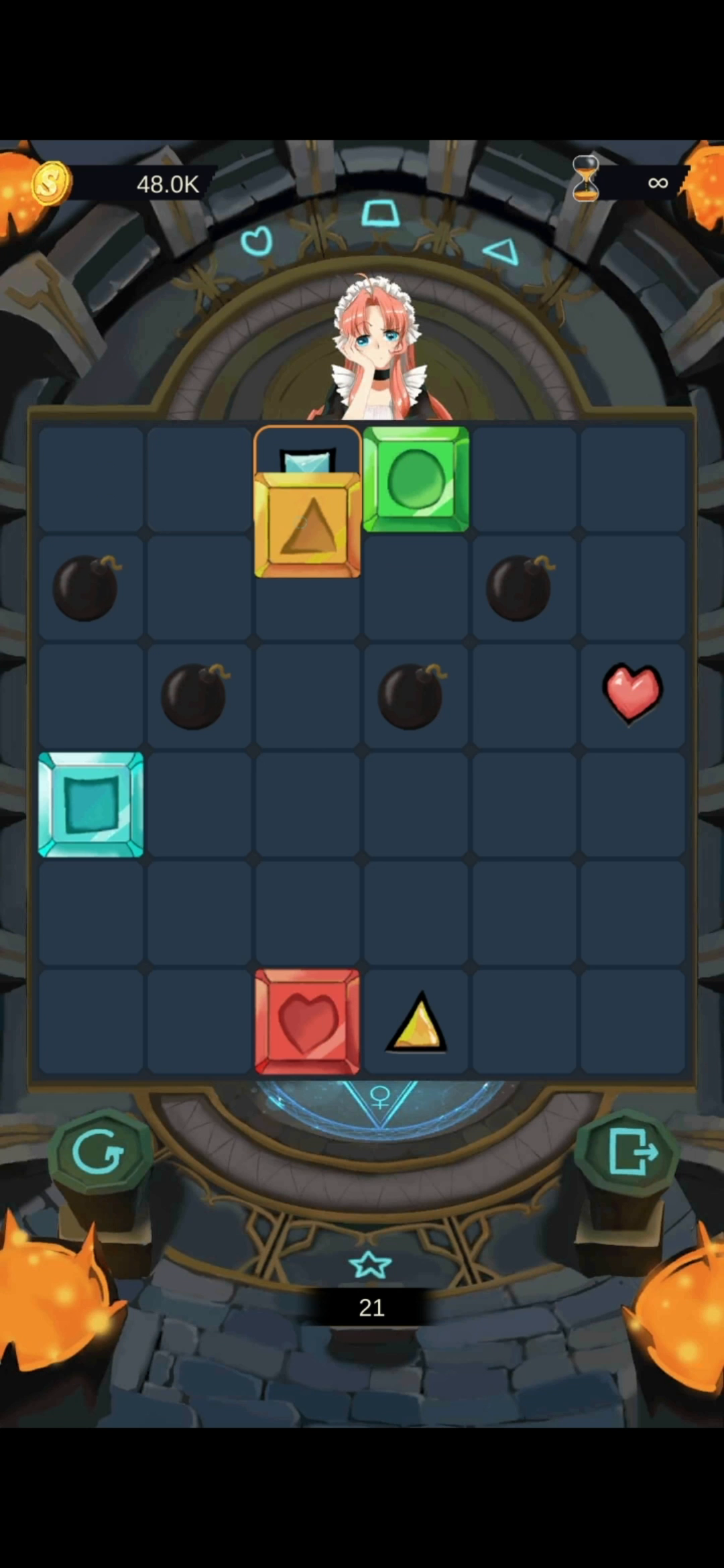 2.炸弹阻碍关卡,这些关卡在我们挪动方块时就会规律性的出现炸弹堵路,需要我们选择合适的路线才能通关,难度中等。