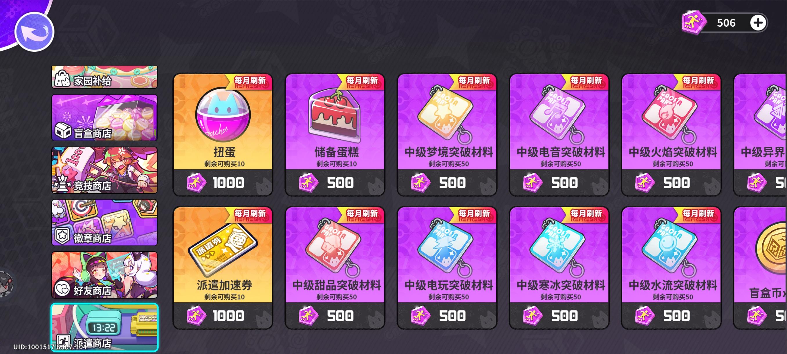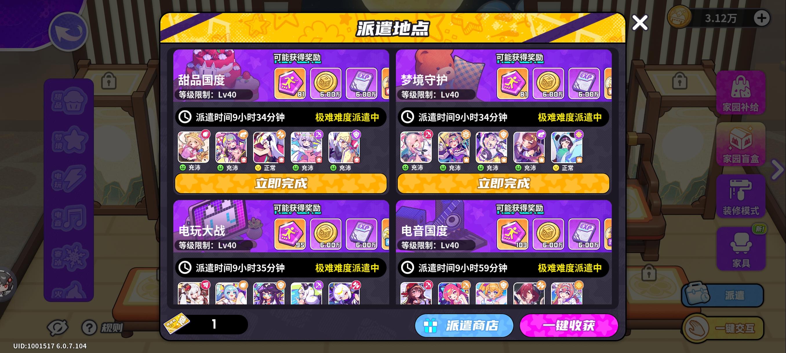 派遣功能能获取家园币与派遣币,并且能收获一些平时拿不到的金徽章(不包括红色原坯)。派遣商店新开业,果然有扭蛋获取渠道!一个月多了10连普通扭蛋,零氪获取全图鉴金卡和满星金卡的脚步又加快了!