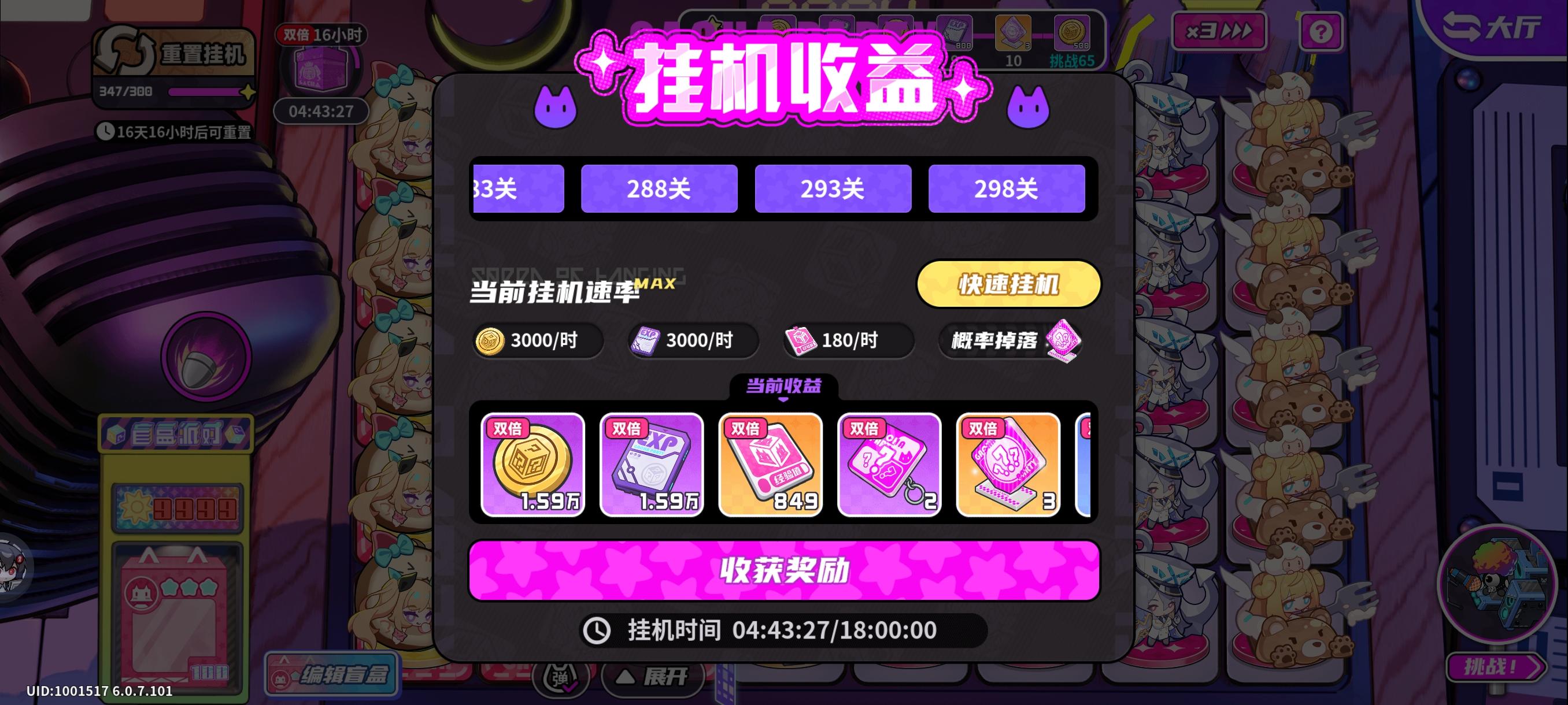 因为新加的派遣系统也会获得角色经验与盲盒币,所以挂机系统速率下调,理论总和对比原来还是不变的。但是玩家不是机器,肯定是有未及时上线领取的损失。不过经过计算,拉满的速率比原先多了2倍还多!完全不担心偶尔的失误,而且一天仅上线领取一次即可补齐当期要求!