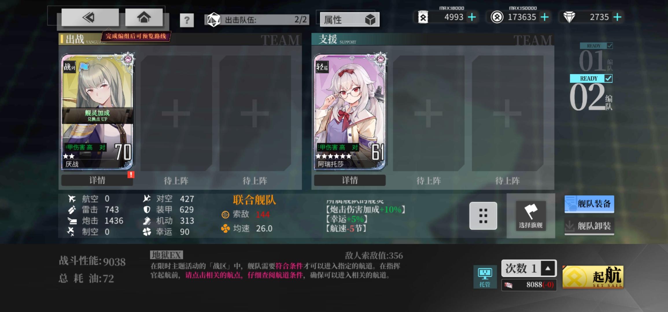 2队 厌战+阿瑞托莎 旗舰厌战(战列)
