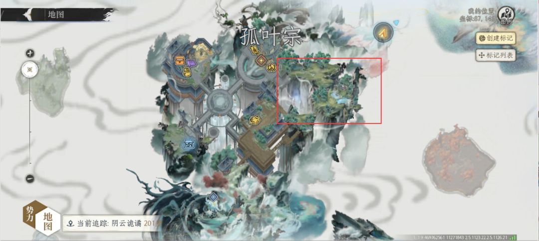 如下图所示,仙友们可以打开大地图寻找灵阁所在的位置。