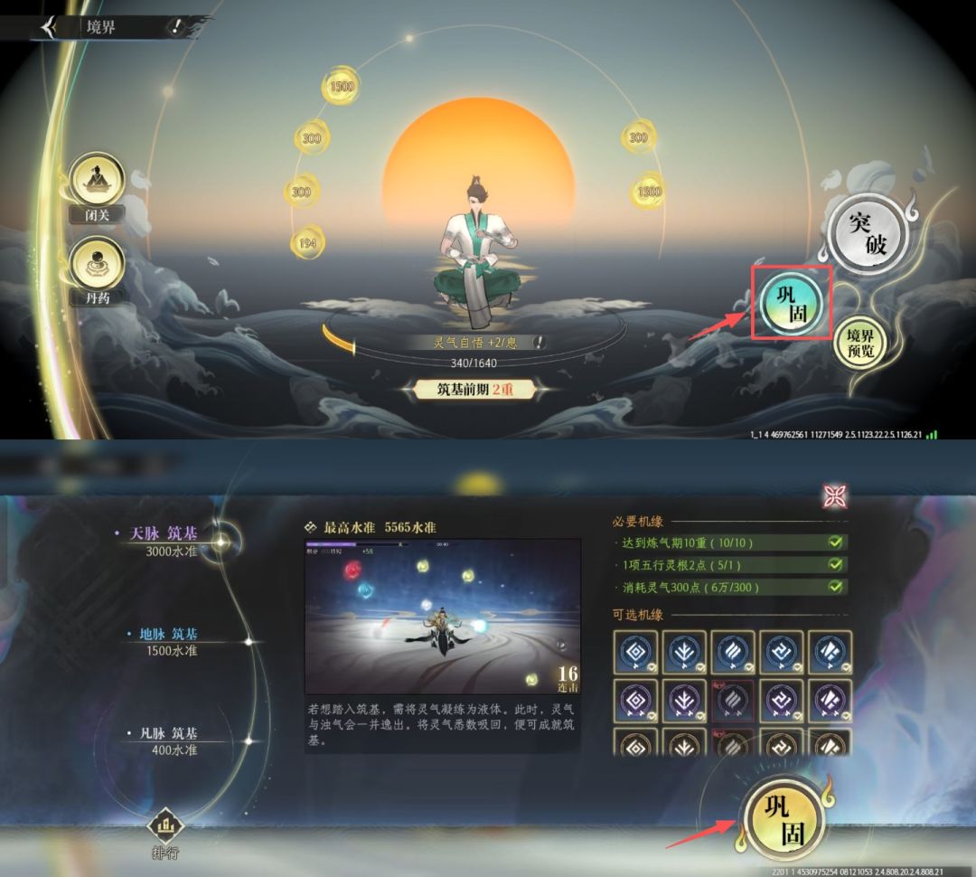 A5:各位仙友不用担心~即使首次突破大境界时,无法达成完美的巩固层次也没有关系,后续随时可以在探索过程中,消耗灵丹再次尝试巩固;在游历过程中解锁更多机缘之后,天道筑基也会更容易完成。