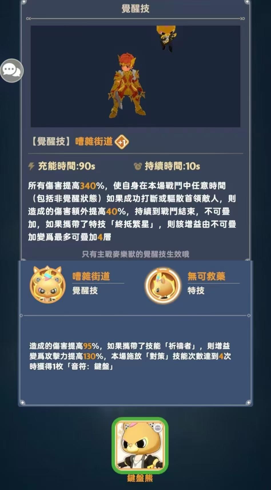 带小熊特技时,释放对策技能4次后获得 音符:键盘