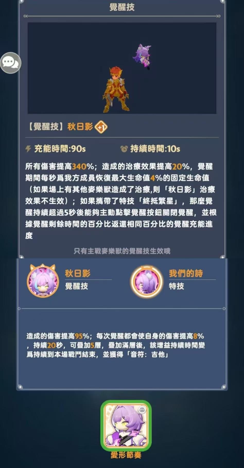 队伍集齐所有音符,觉醒时全队增伤20%,持续时间同此次觉醒时间