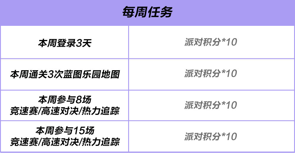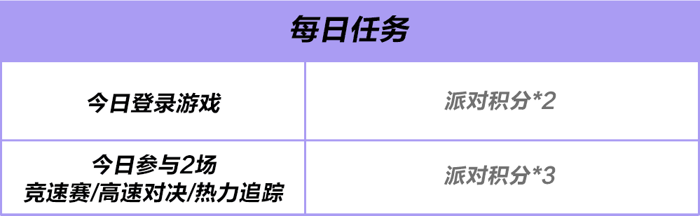 活动期间,完成相应任务可获得派对积分。当派对积分累计到一定数量时,即可兑换奖励!最高可兑换钻石*300、传奇改装零件*500、妆容-狐里狐气、妆容-兔言兔语好礼~