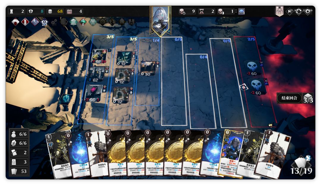 由于时间仓促,《凛冬前线》这款游戏我目前只打到了第五难度平坦雪原,很大一部分原因来自于游戏过高的随机性,导致强力的流派很难成型,特别是最终的BOSS劫难-不死之死,如果没有及时形成养大哥的卡牌,面对数千血的BOSS和喜欢带冲锋占格子的粪怪,只能望洋兴叹了。目前游玩下来感觉金手流派无限金币的海伦妮和叠血超猛的特殊卡特伊尔打终章是最轻松的。如果有小伙伴想分享自己的过图思路,也欢迎在评论区留言分享~