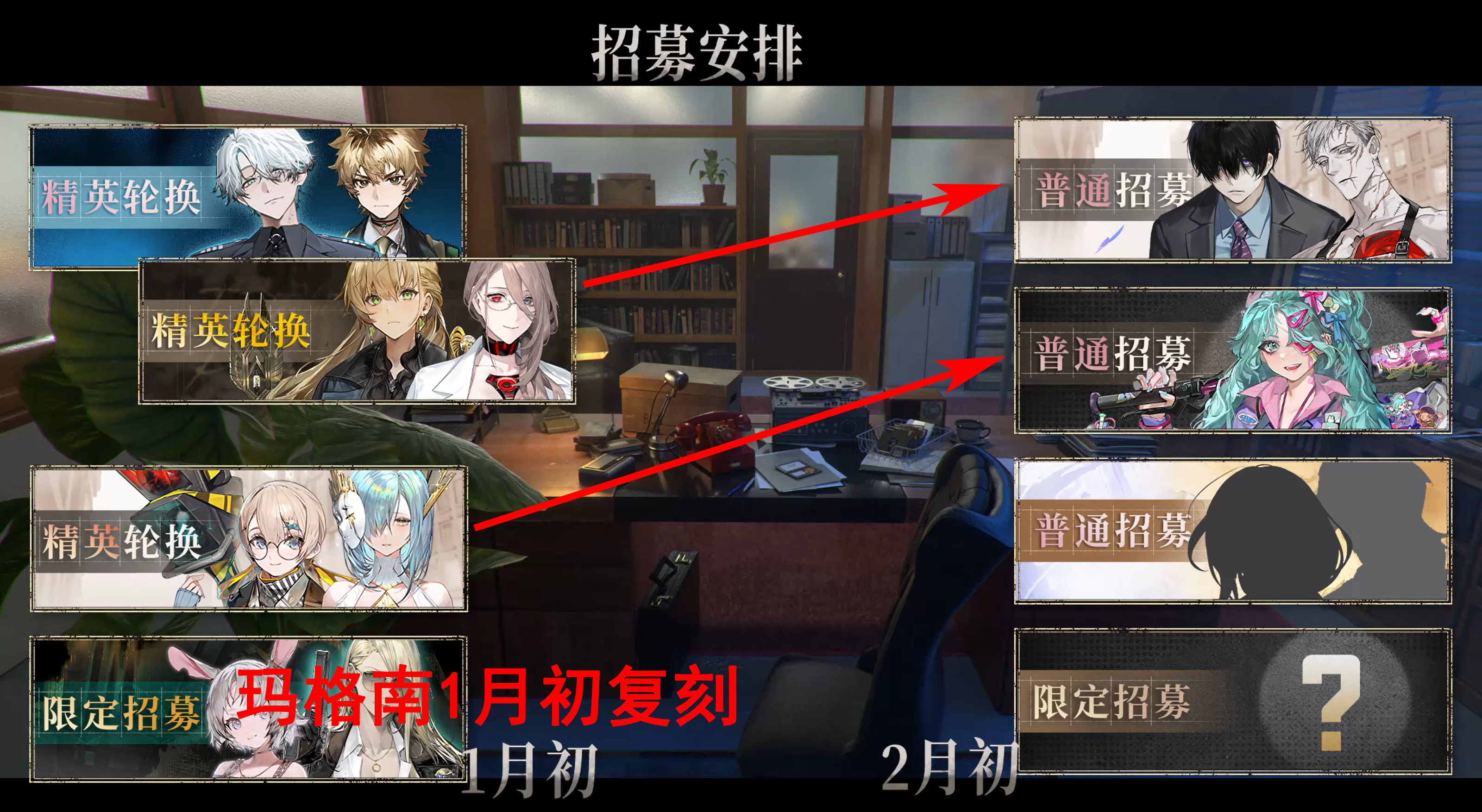 默汉卡池结束,旧活动复刻(开服的活动,新老玩家均可拿奖励,老玩家再次拿角色奖励时是拓变,溢出可兑换银色奖章),12月中下旬卡池结束后实装。