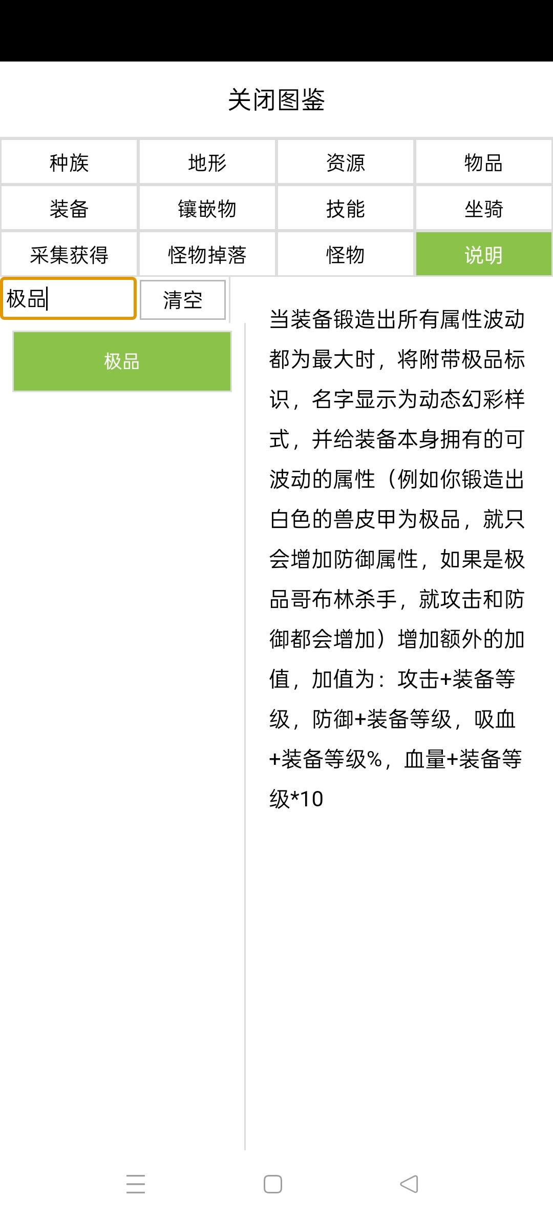 a.在锻造波动时,如果全属性都波动到最大值,装备会变为极品装备,将享受极品加成,也就是在装备已有的属性上多出对应等级的属性,如图鉴所示: