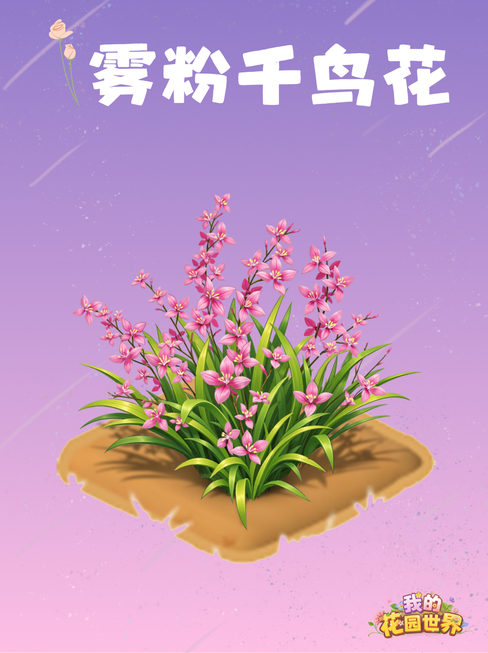 🌸【雾粉千鸟花】:花姿如鸟栖枝,粉紫色调朦胧柔美,细碎小花簇拥而生,在光影流转间更显温婉气质。