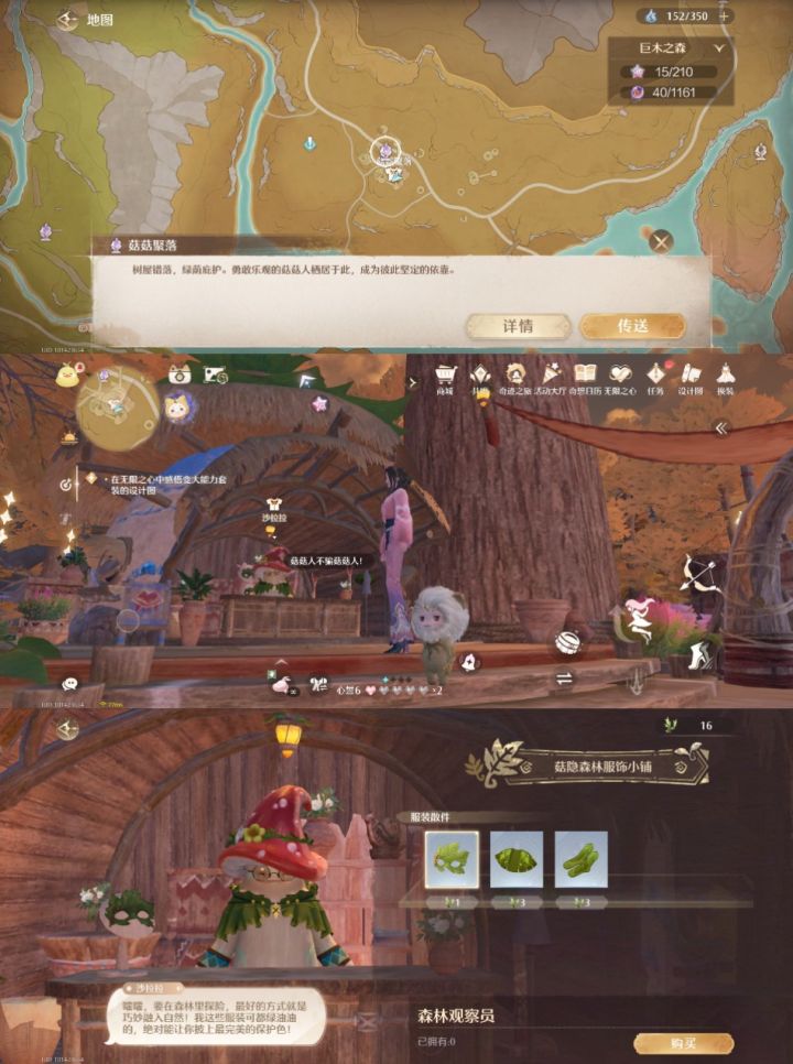 首先传送至菇菇聚落,服饰小铺就在聚落最顶层的小屋里