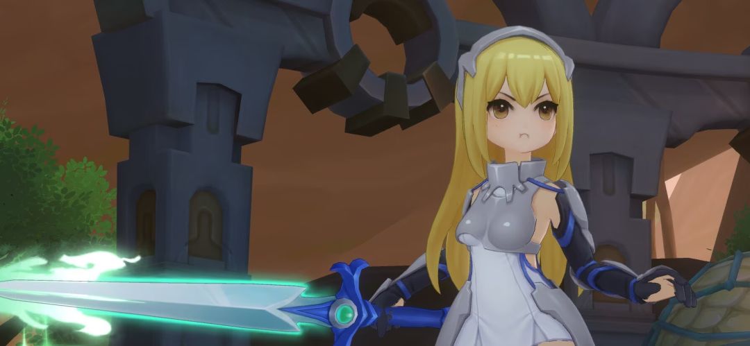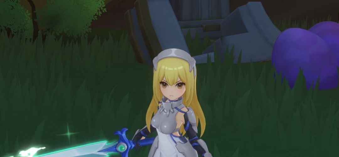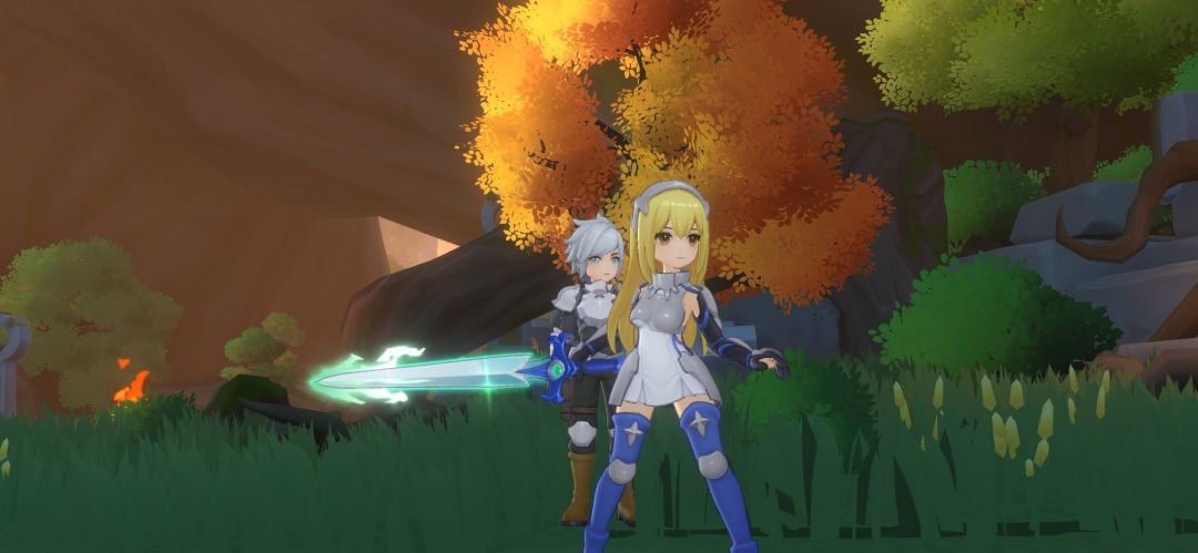艾丝·华伦斯坦,这位来自异世界的剑士,正与伙伴贝尔·克朗尼在深渊之湖的郊野中修炼。