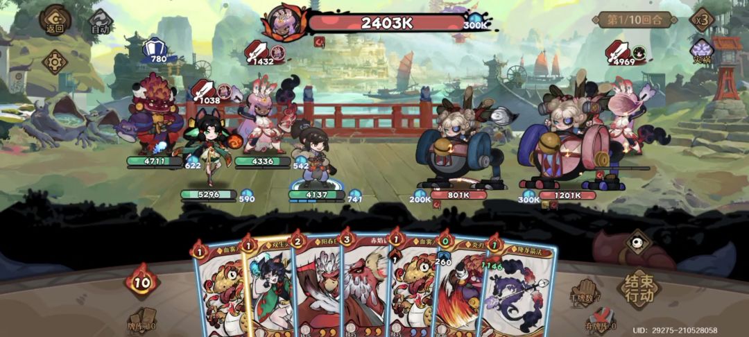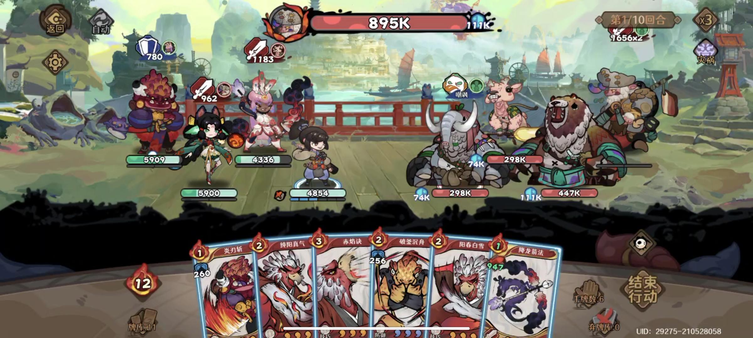 (如首回合无过牌卡,灵童大招不开,所有卡牌能打出全打出即可)