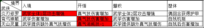 武侠境界及对应加强方向