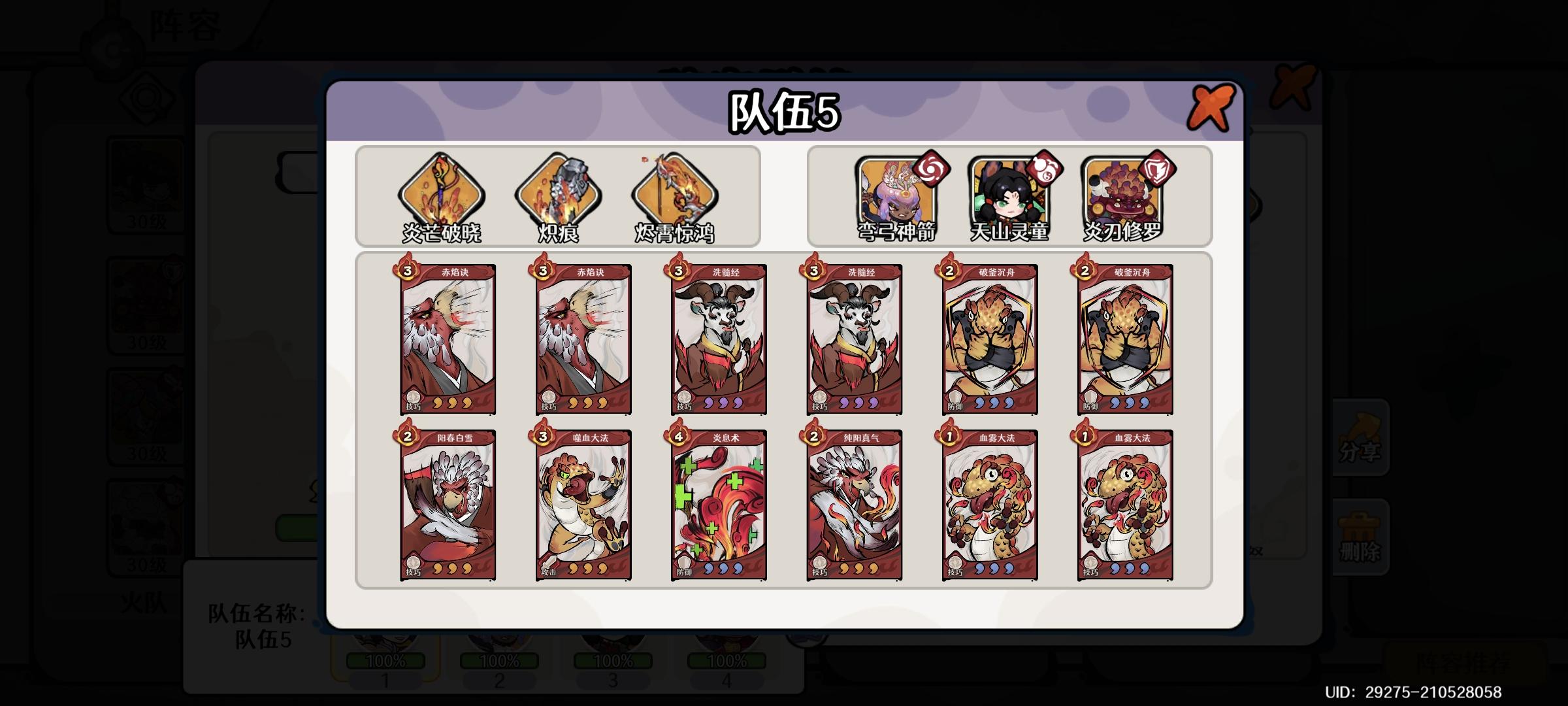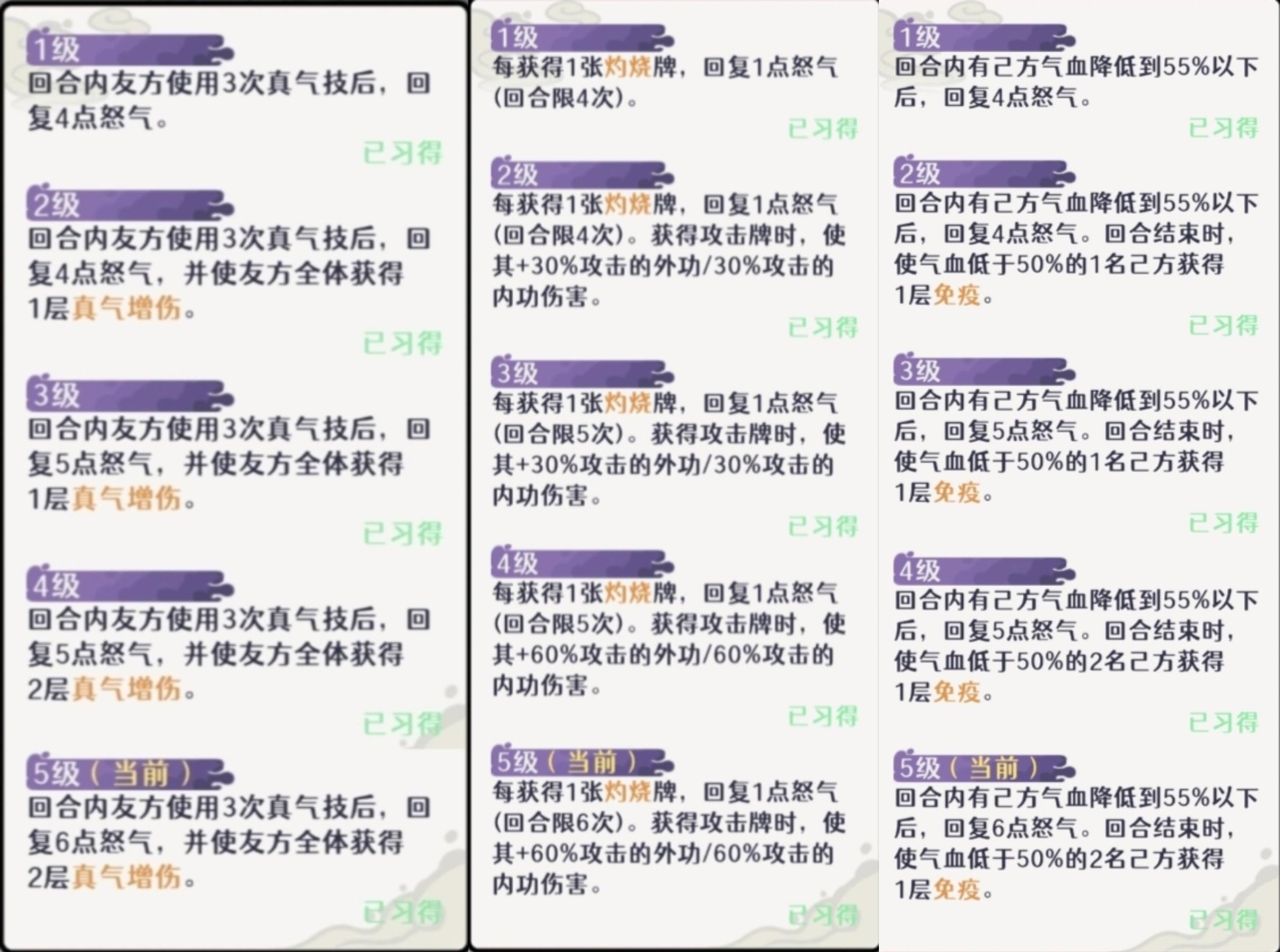 实战试了下,2张少年灼烧卡不够赤焰决吃buff,且天山灵童武学加成欠佳,故3张。