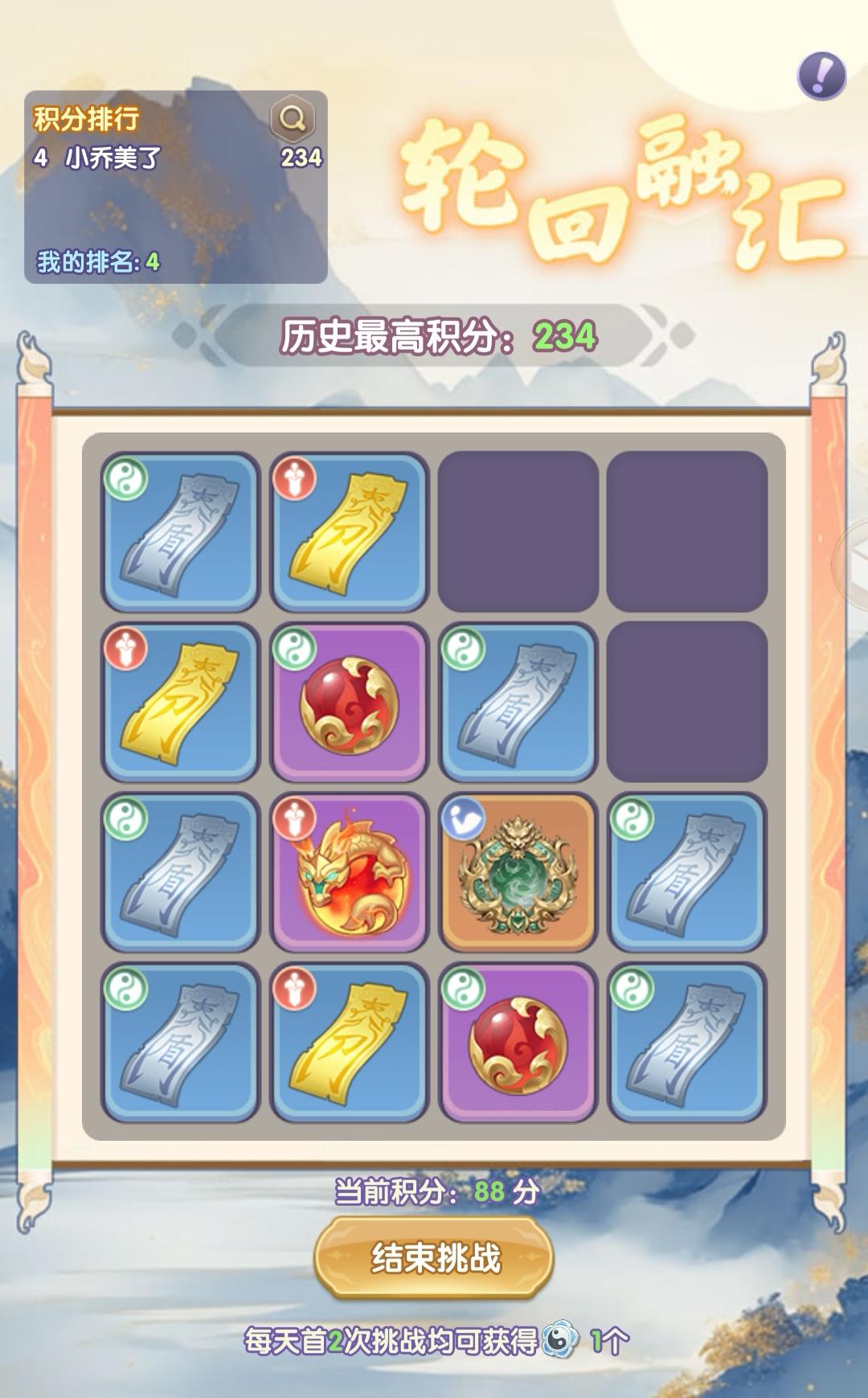 8.新的玩法,移动使2个相同的图案合成获得2分,耗时间,有耐心的玩家可以慢慢移动。