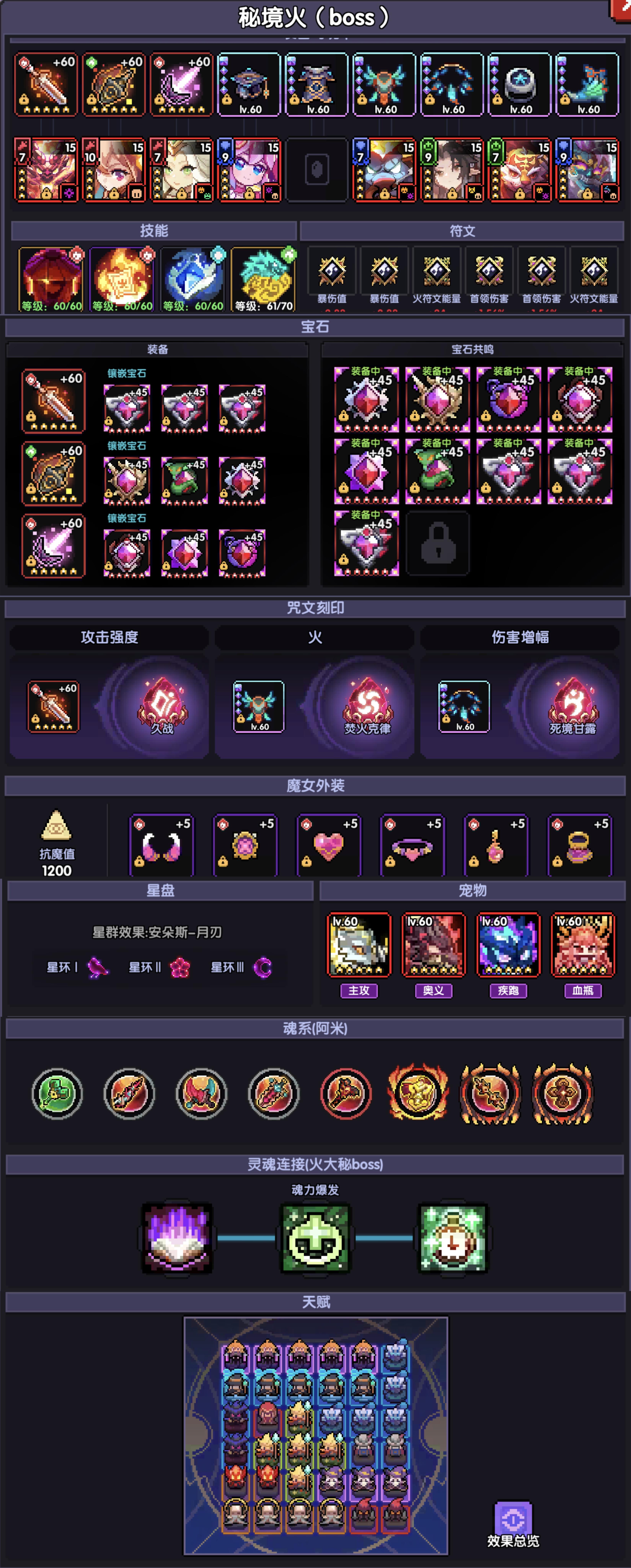 对于魂点不够用的同学,在满足穿透和暴击的前提下,各项属性平均分配点取,或者可根据自己面板来自己调整加点