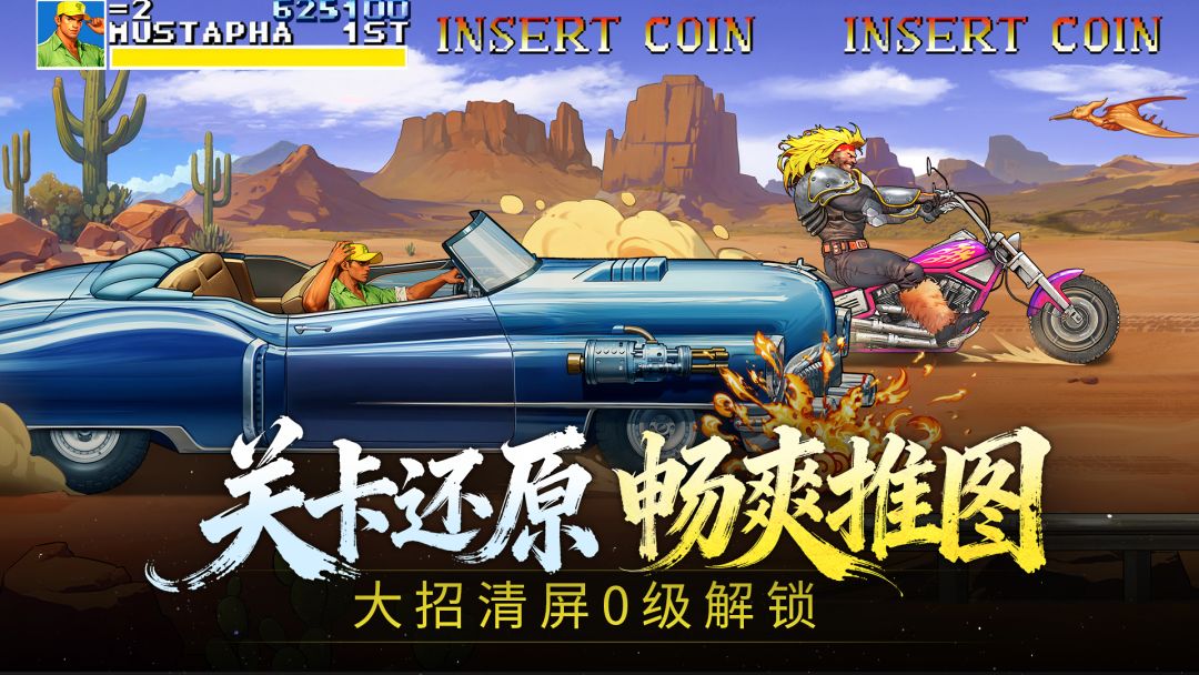《街机恐龙》保留了大量街机经典玩法,玩家可邀请好友同频作战,携手力克强敌。而街机最经典的1币通关挑战玩法,也同样被保留,让玩家梦回1990,开上心爱的小汽车,把骑着摩托的鬼火男反复碾压······