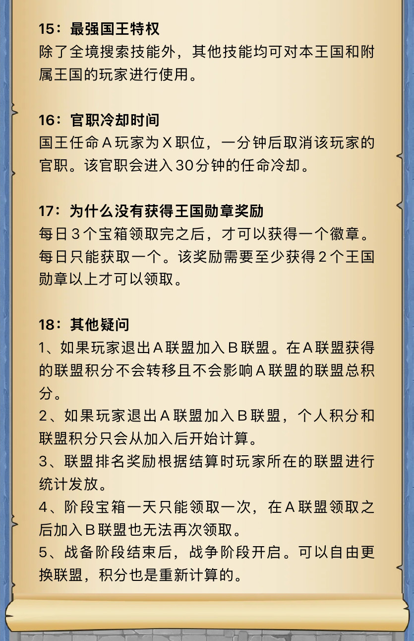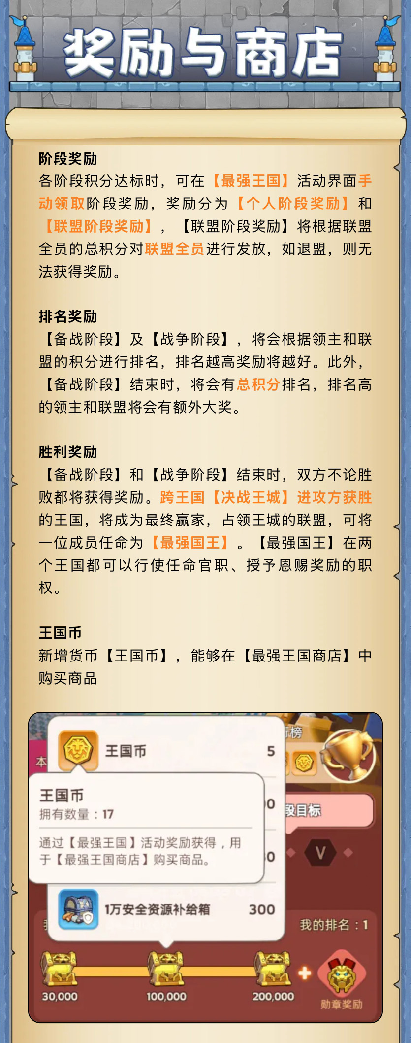 经过漫长的发展与积淀,您的王国愈发强大但也面临新的挑战。最强王国的对决即将开始,准备好和其他王国一决胜负了吗?