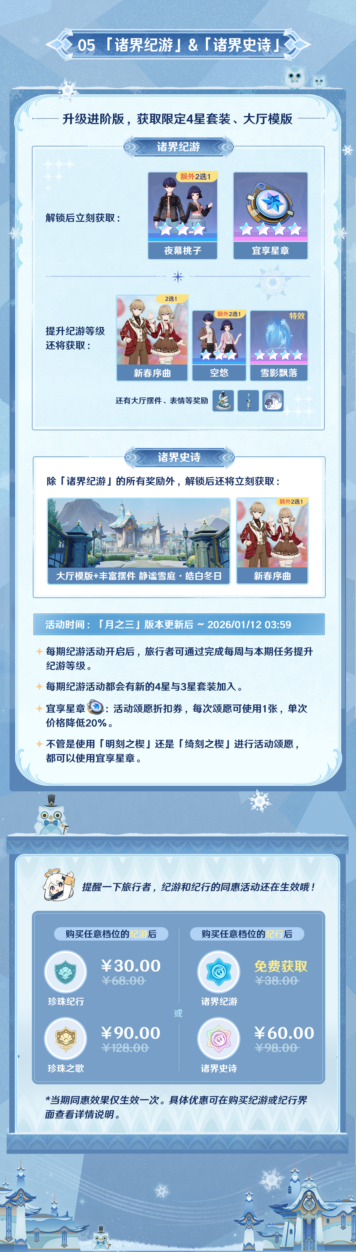 旅行者好呀,欢迎来到「千星奇域」。「雪阵赛季」即将开启,一起来看看新版本中有哪些福利和活动吧!